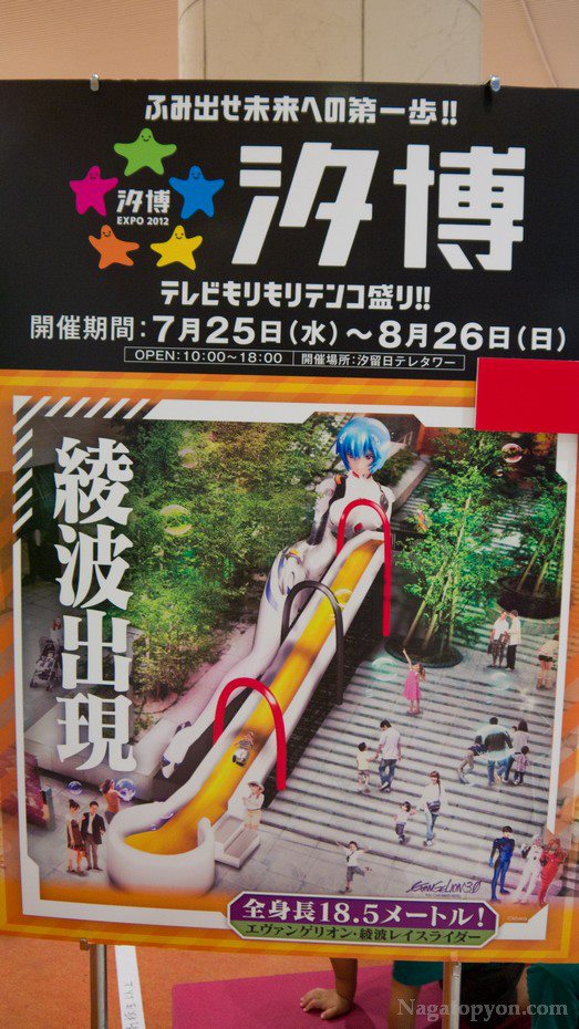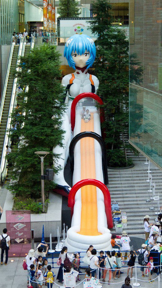 Ya sabemos que en Tokyo hacen cosas muy raras de vez en cuando. Y esto no se queda atrás. Lo que verán a continuación puede ser descrito solamente con imágenes. Les dejo con 3 imágenes que hablan más que 1000 palabras. Rei Ayanami gigante acompañada de su tobogán inflable. Todo sea por la diversión de los niños.